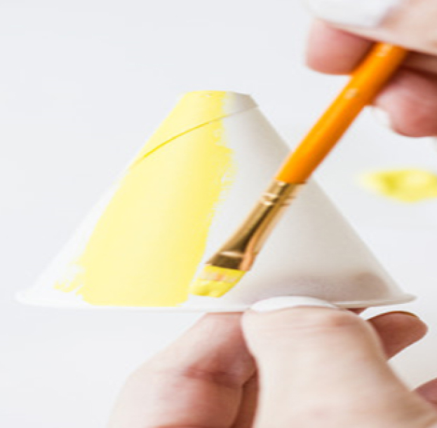 First things first, snip the top of your paper cone off, creating an opening for the leaves. Then paint your cones the color of your choice and let dry. Be sure to paint the rim of the cone, too!